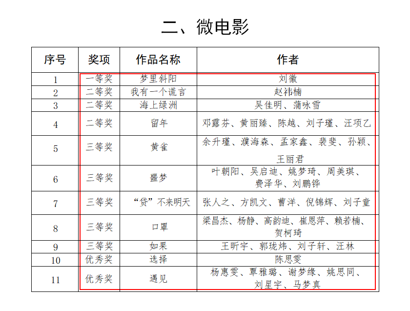 戏剧影视专业学生充分发挥专业优势,创作出大批优秀作品,斩获微电影类作品所有奖项。(红框内为黑料正能量