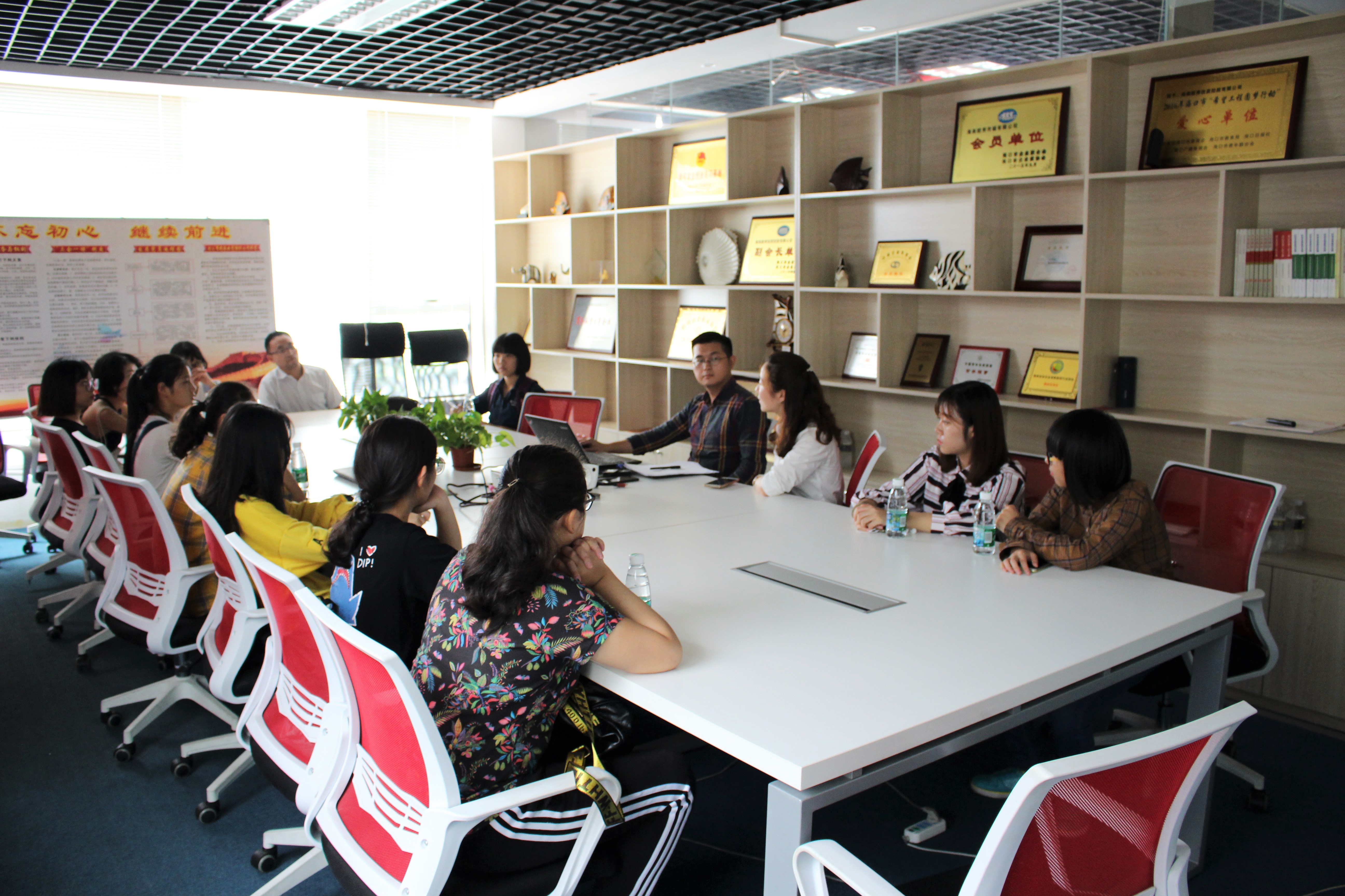 12名同学一起来到位于海口市复兴城的海南酷秀投资控股有限公司(以下简称酷秀集团)进行参观,受到了工作人员的热情接待。