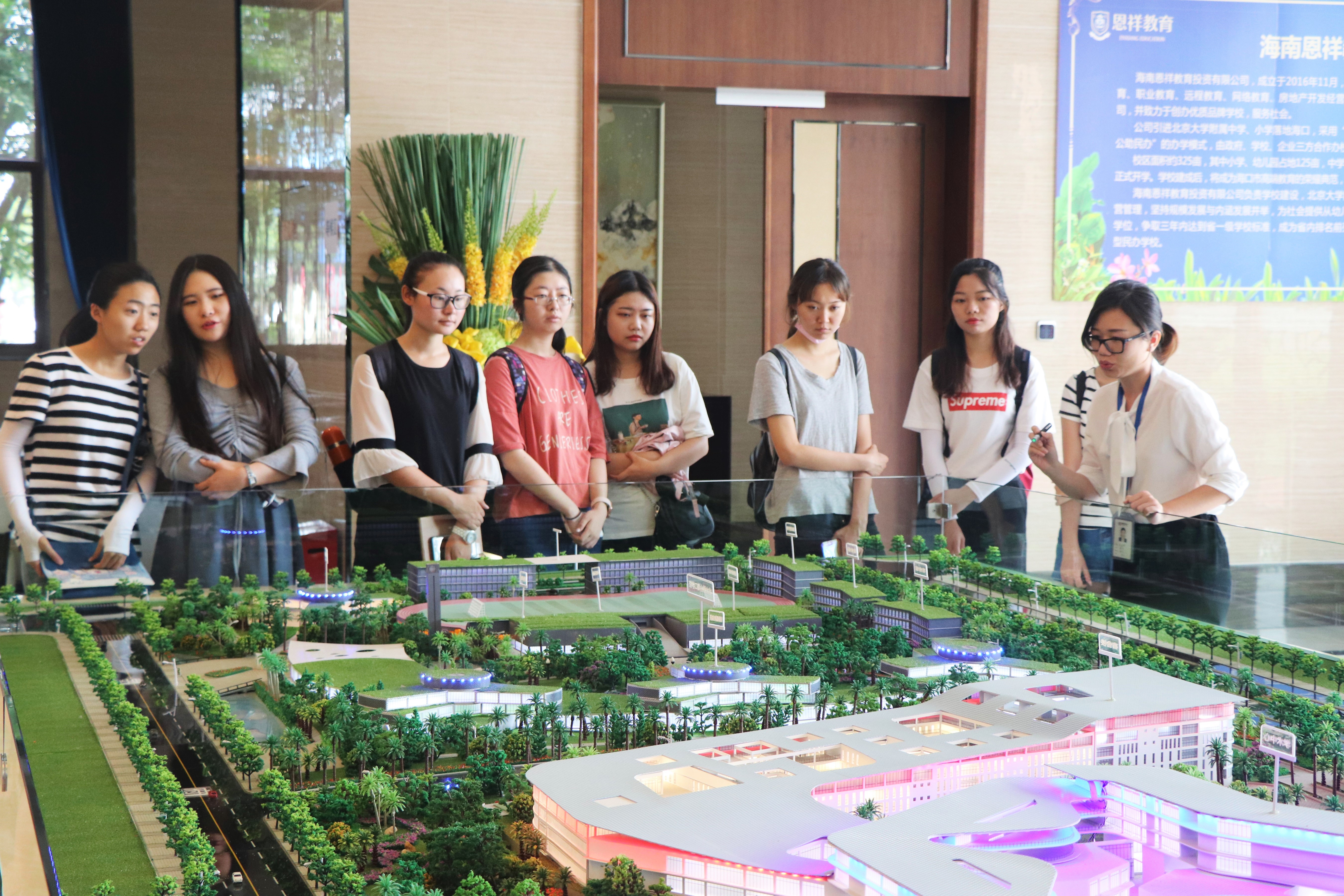海南恩祥房地产有限公司自2010年以来,加快产业转型升级,到目前为止,除房地产领域外,陆续在文化、影视、教育、医疗、旅游、商业等方面布局项目,取得骄人成绩。据销售部门负责人袁涛介绍:“公司开发的海口恩祥新城项目位于海口市秀英区、中心城区与南部生态区交汇处,项目规划面积约4100亩、项目计划总投资200亿,其中更是采用‘世界公园商业城市’的设计理念,是集大型商业中心、旅游目的地、健康教育创意产业、传统文化及生态资源为一体的城市公园商业集群”。项目的宏大规模令在场的同学赞叹不已。