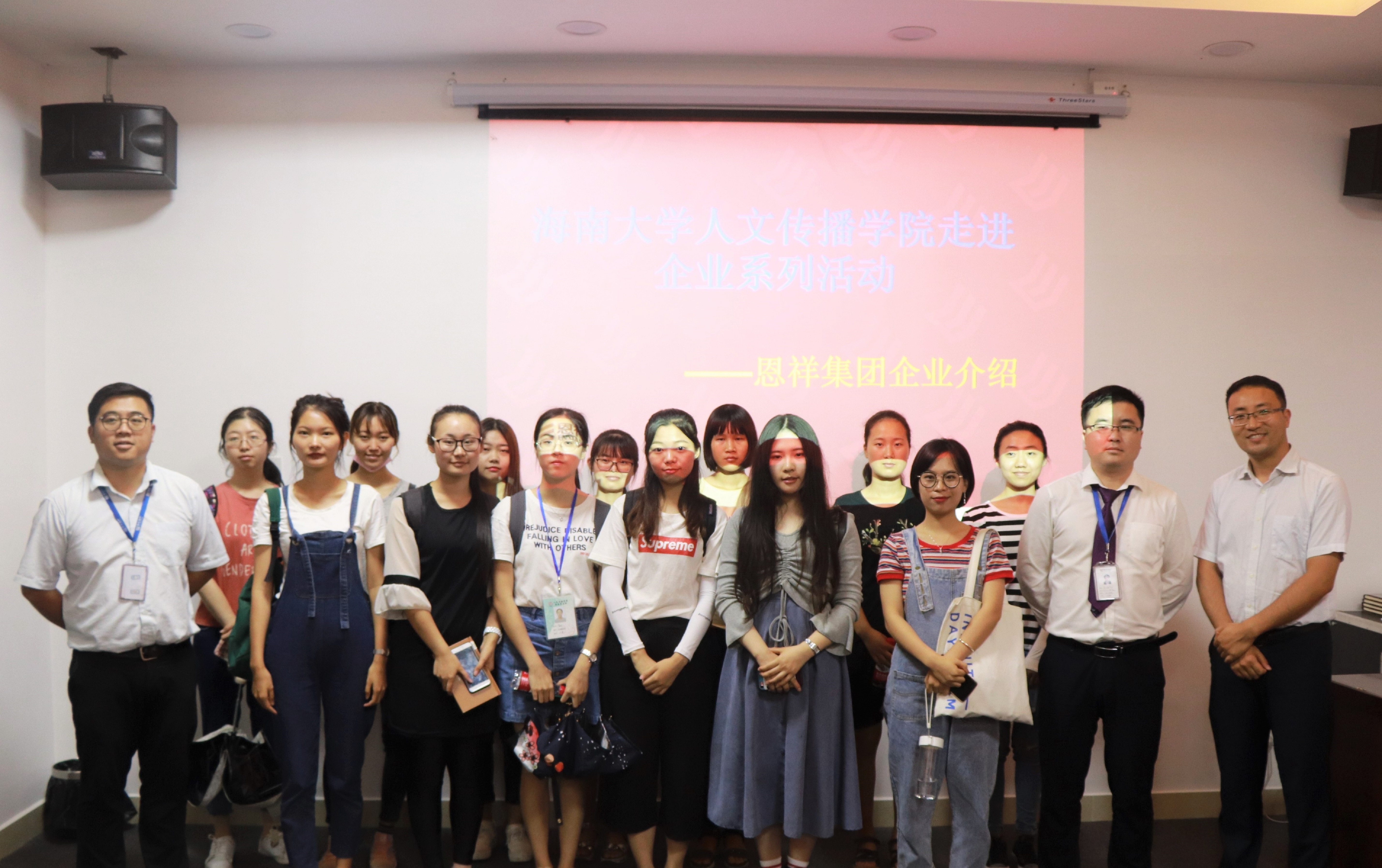 人文传播学院学院2018年 “走进企业”系列活动第一站顺利开展,2015级和2017级各专业的15名同学在学工办主任公衍峰老师的带领下走进海南恩祥房地产有限公司进行参观学习,受到了区域副总经理曹留德、行政人事总监韩亚辉以及相关工作人员的热情接待。