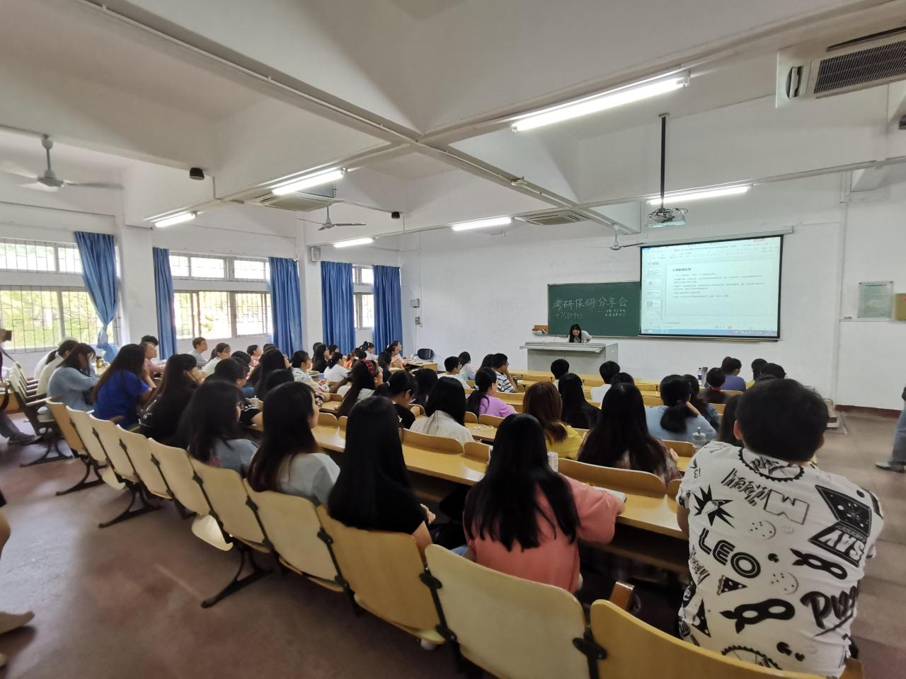 首先,主持人简单介绍了此次活动的目的以及活动流程,之后以一个精彩的考研学生的视频正式拉开考研保研经验交流会的序幕,视频生动地介绍了当代大学生的考研现状。