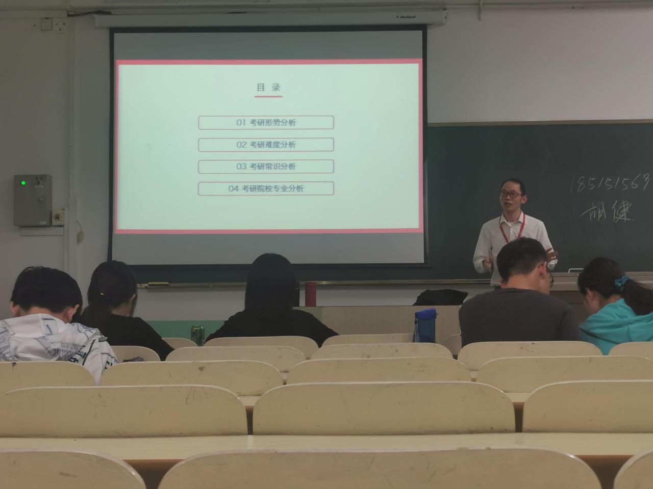 在听了老师的细心讲解和鼓励后,同学们更加明确了自己前进的方向,这次讲座也使同学们更加坚定了学好自己专业的信心。“有梦就会实现”,在考研的学习中,只要我们有决心、恒心和毅力,就一定能够进入自己理想的高校,迎接更加美好的未来!