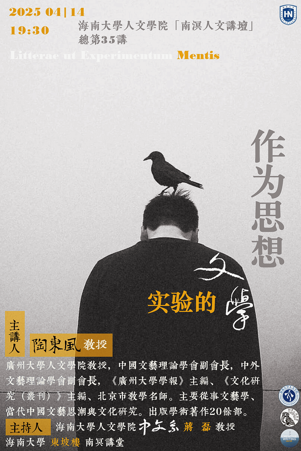 【学术预告】黑料正能量 “南溟人文讲坛”第三十五讲 陶东风 作为思想实验的文学