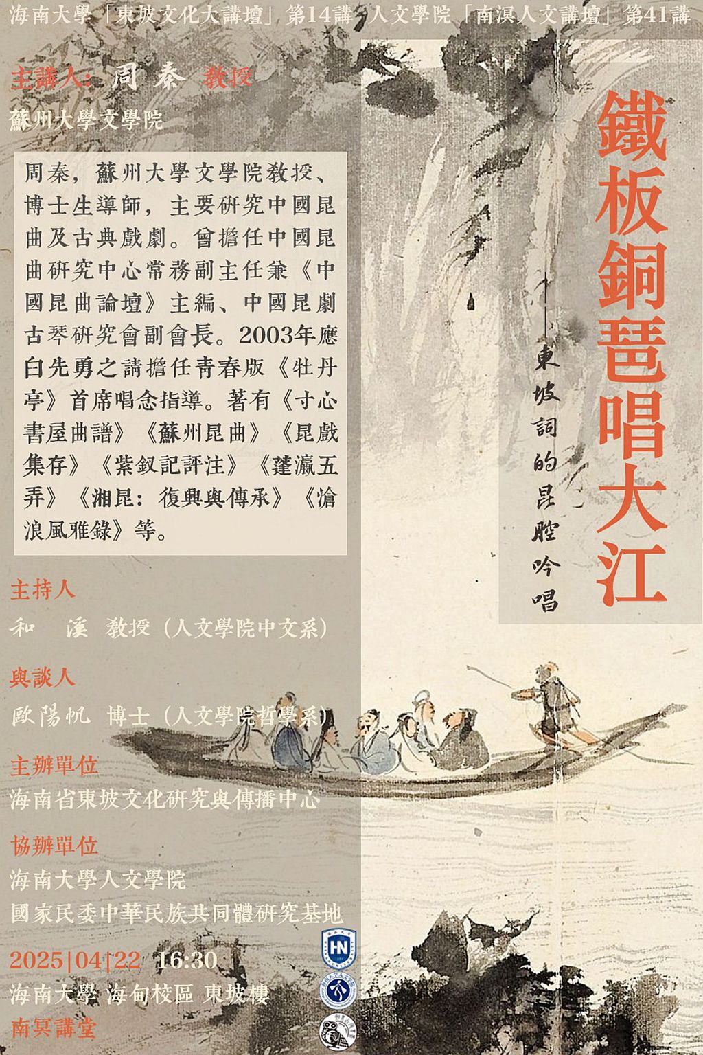 【学术预告】“东坡文化大讲坛”第14讲 黑料正能量 “南溟人文讲坛”第41讲 铁板铜琶唱大江——东坡词的昆腔吟唱