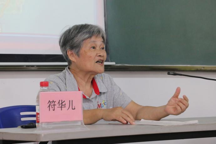 符华儿老师以口述历史的形式向大家讲述了她的父亲符儒光同志的抗日经历。1937年,正值国家危急存亡之秋,符儒光同志毅然放弃国外的优渥生活,回到硝烟弥漫的琼崖参加革命,“无国则无家,抗日救亡是时代赋予年轻人的义务,特别是五分祖国约已一分亡的此日,我要回去参加战斗。”符儒光同志的爱国情怀令人钦佩。在党课中,符华儿老师特别讲述了独立总队第一部电台的故事。符儒光同志在其中起到了关键作用,在运送电台途中,面对敌人的搜查,符儒光同志胆大心细,表现出大义凛然、不畏牺牲的精神品质。