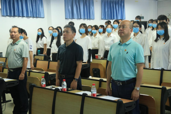 人文传播学院新党员入党宣誓仪式在5教201课室顺利举行。学院党委书记邱华祥、院长刘复生、特邀党建组织员林少敏出席,近90名新吸收的预备党员参加。仪式由党委副书记罗邻球主持。